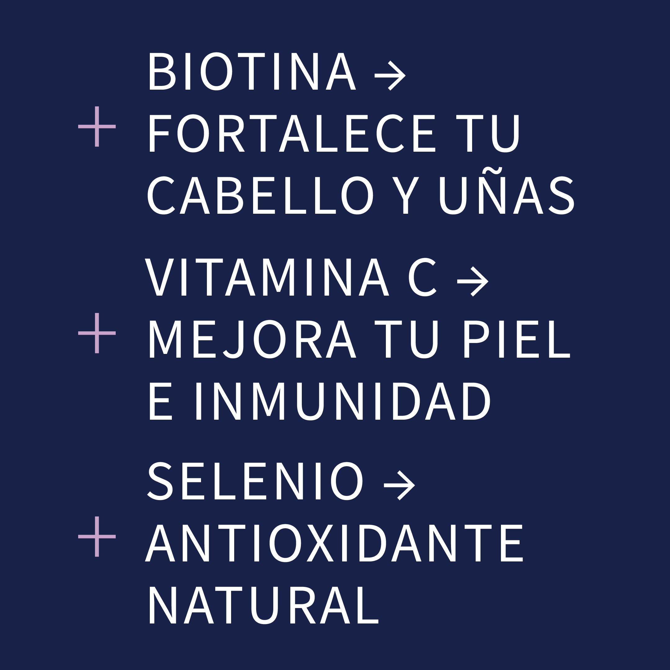 (vitamina B7, biotina). La biotina se recomienda comúnmente como suplemento dietético para fortalecer el cabello y las uñas, así como para el cuidado de la piel. Se sugiere que la biotina ayuda al crecimiento celular y al mantenimiento de las membranas mucosas.